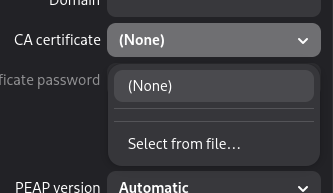 Content- Select the network manager applet from the toolbar (there is a similar icon in Debian and Ubuntu on Gnome Shell) Wi-Fi certificate chains (for "CA certificate") are available from the digital-certificates page. NOTE THE USERNAME INCLUDES A BACKSLASH NOT A FORWARD SLASH. | |||