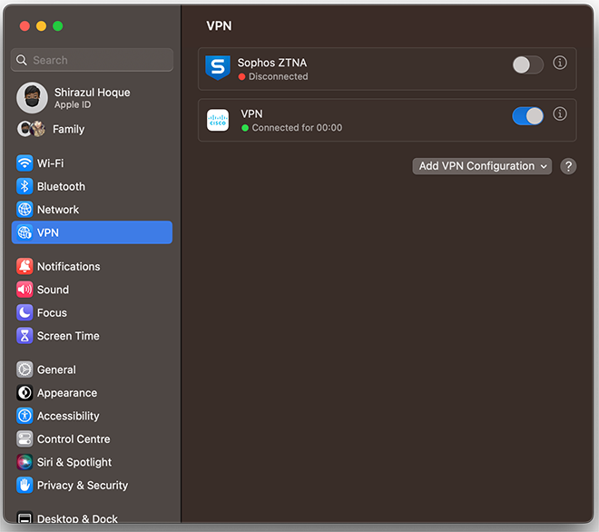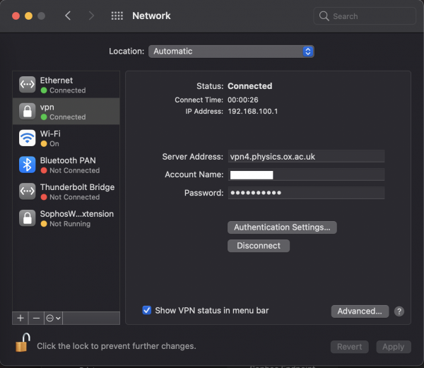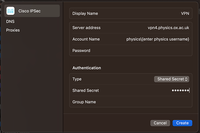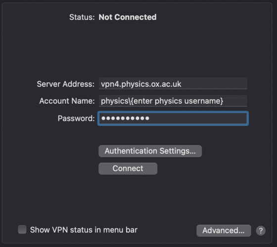 ContentmacOS Fortigate VPNThe Fortinet client is available to download from the physics self service app. Once installed the configuration details can be found here. | |||