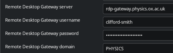 - Remote desktop gateway server: rdp-gateway.physics.ox.ac.uk